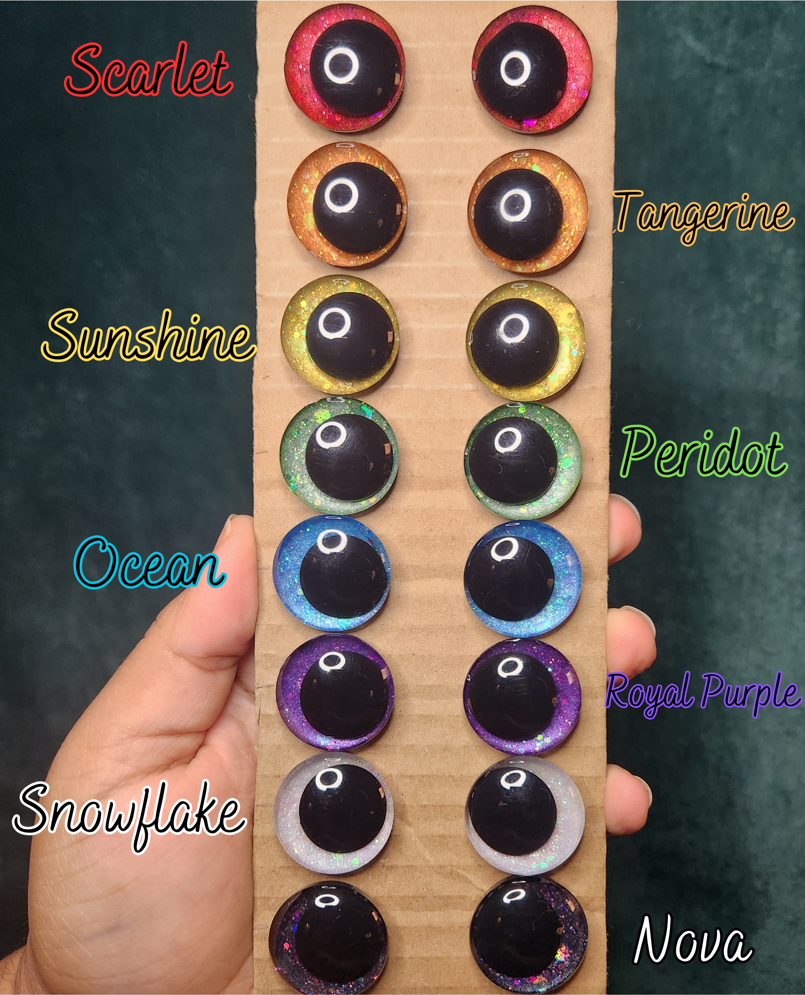 **DISCLAIMER: Due the manufacturing of these eyes there is a small chip on one side of every eye. This chip will not show when the eye is secured to your plushie! Eyes are used in our plushies and you can see more on our Instagram and Facebook.